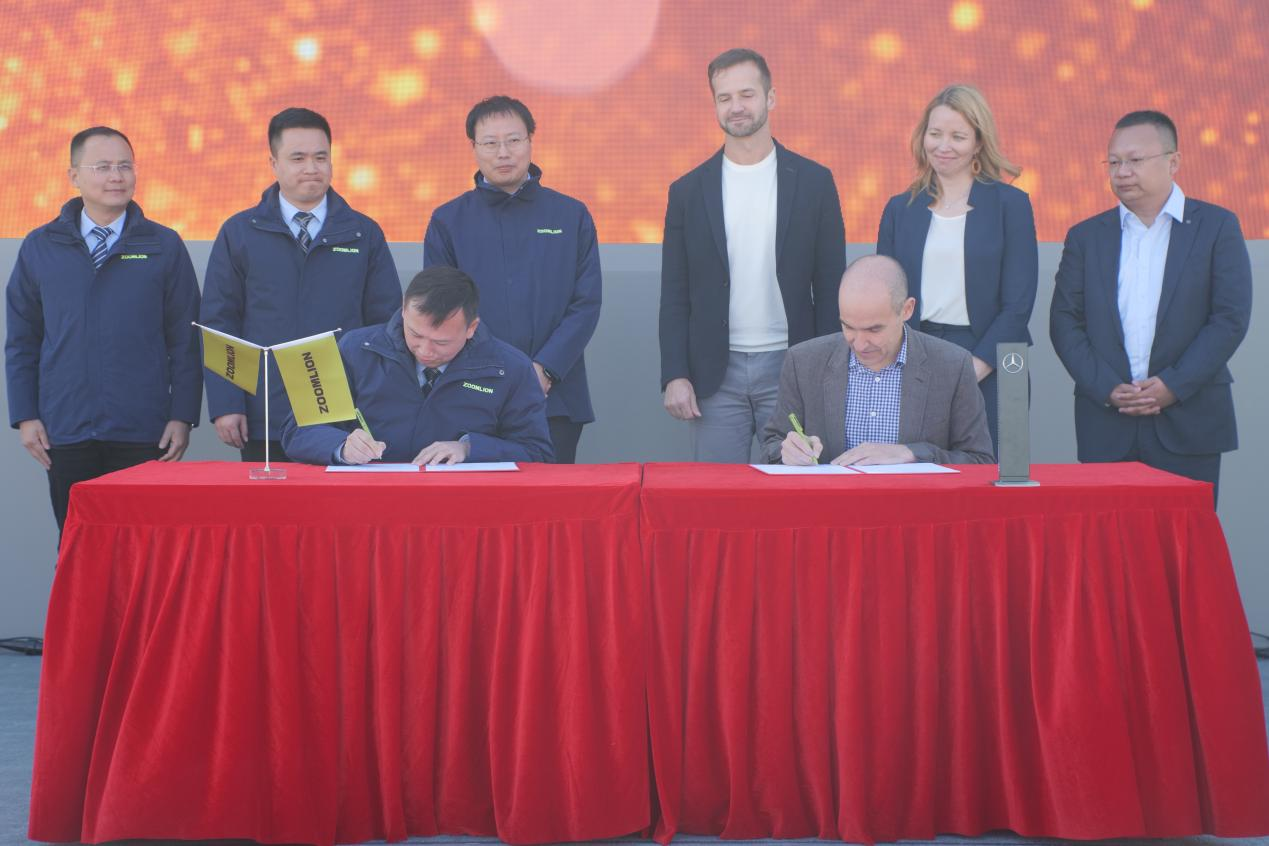 ▲中聯(lián)重科與梅賽德斯-奔馳卡車簽約現(xiàn)場